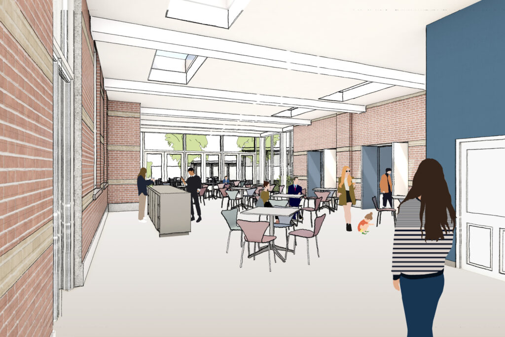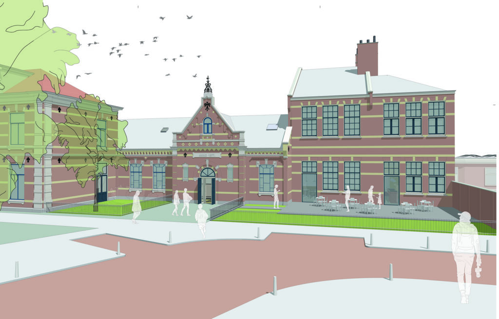 Vanaf 2028 ontvangen we onze gasten via een nieuwe entree aan de rechterzijde van het pand, waar ook café De Halve Vleet met een terras aan de voorkant gevestigd zal zijn.